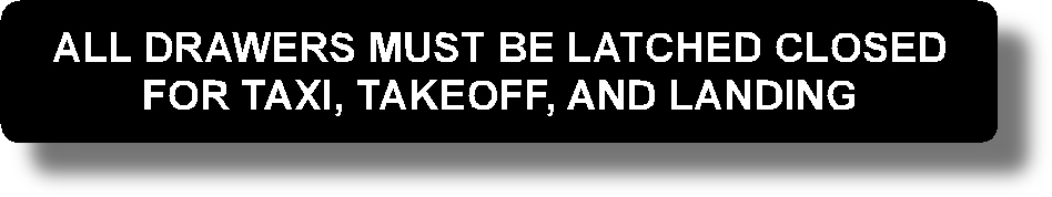 P/N:All Drawers Must Be Latched Closed For Taxi, Takeoff, And Landing